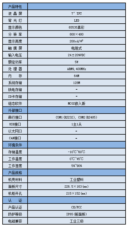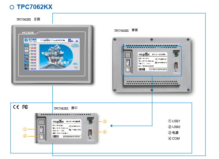TPC7062KX,是一套以嵌入式低功耗CPU為核心(主頻400MHz)的高性能嵌入式一體化觸摸屏。該產(chǎn)品設(shè)計采用了7英寸高亮度TFT液晶顯示屏(分辨率800×480),四線電阻式觸摸屏(分辨率4096×4096)。同時還預(yù)裝了MCGS嵌入式組態(tài)軟件(運行版),具備強大的圖像顯示和數(shù)據(jù)處理功能。